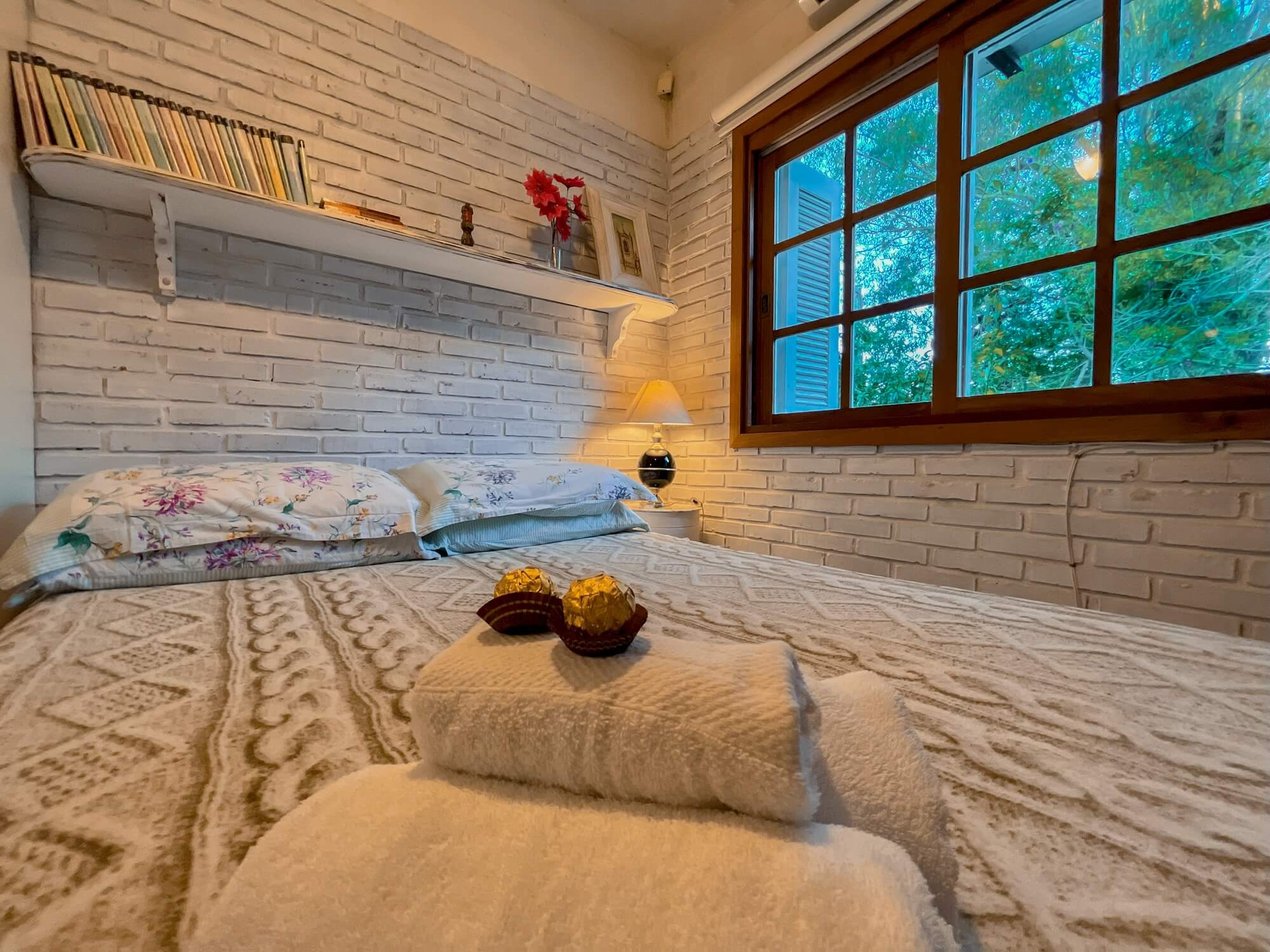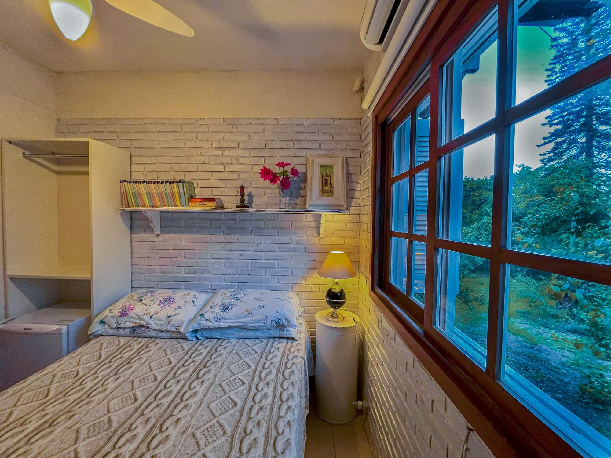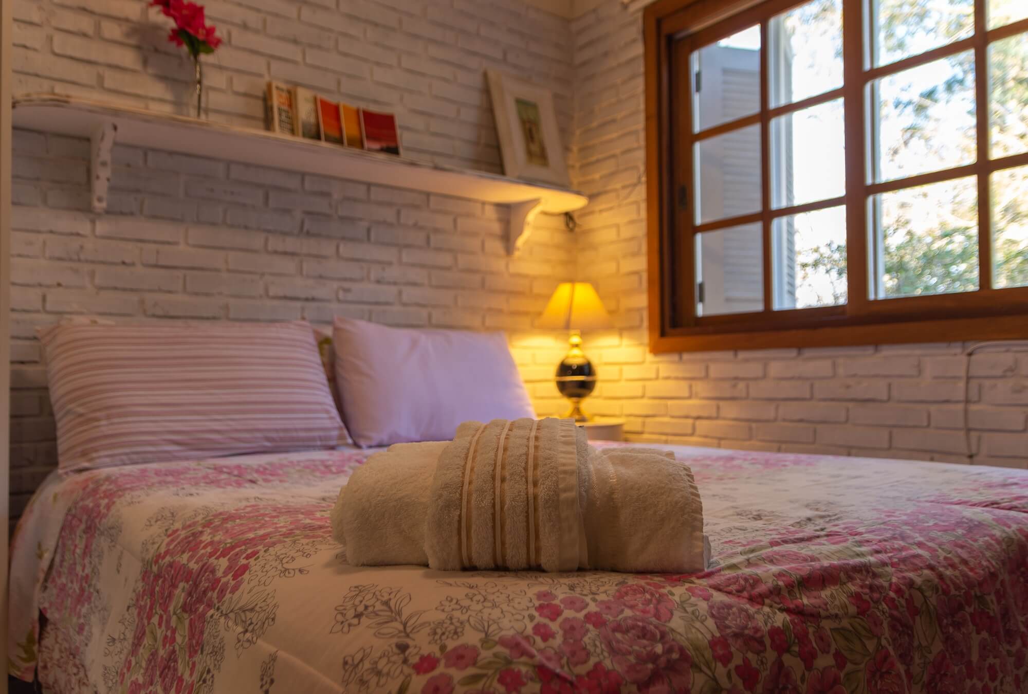 A suíte Hortênsia possui banheiro privativo e acesso direto ao pátio da pousada. É composta por uma cama de casal. É uma das acomodações que aceita seu animalzinho de estimação!!